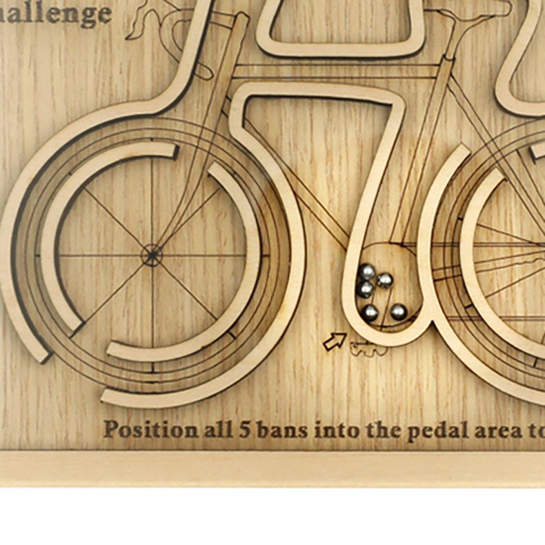 Le Vélo billes est terriblement délicat à dénouer, son mécanisme est rude. Votre but va ainsi être de deviner comment ce casse-tête fonctionne et comment sont maintenues les différentes sections du puzzle. Tu vas alors devoir trouver les bonnes manipulations pour réussir séparer les parties de bois qui le composent. Ensuite il va certainement falloir réassembler toutes ces parties et reformer le Vélo billes.
