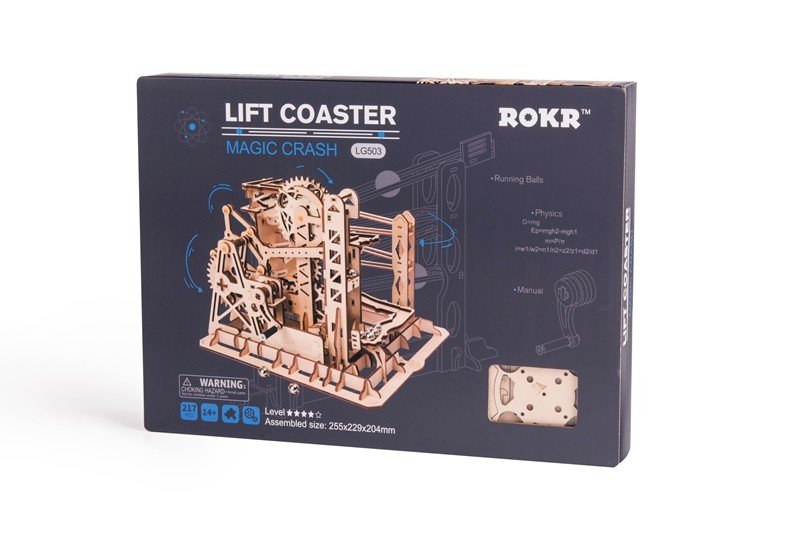 Cette maquette mécanique est réalisé avec des matériaux respectueux de l’environnement. Ce circuit est conçu en planchette de contreplaqué assez fin, scié avec une grande exactitude au laser, qui égalise les bords et leur donne la teinte brune familière. Le pack de construction est plein de morceaux en bois, ce circuit à bille lift peut devenir un élément de ornement rêvé pour sublimer un bureau ou une chambre.